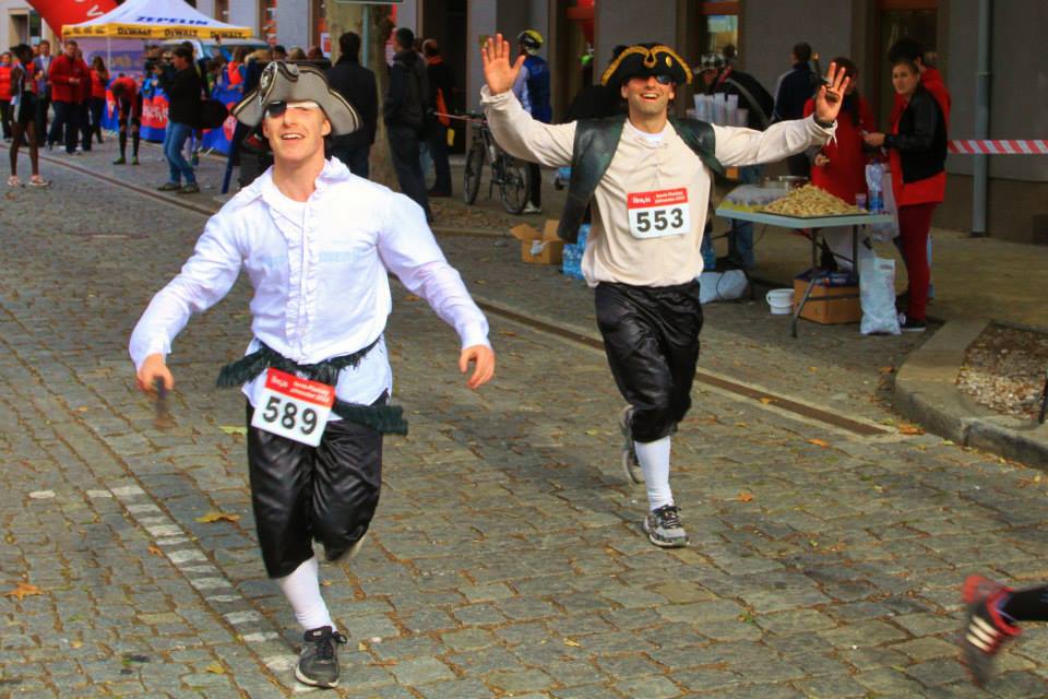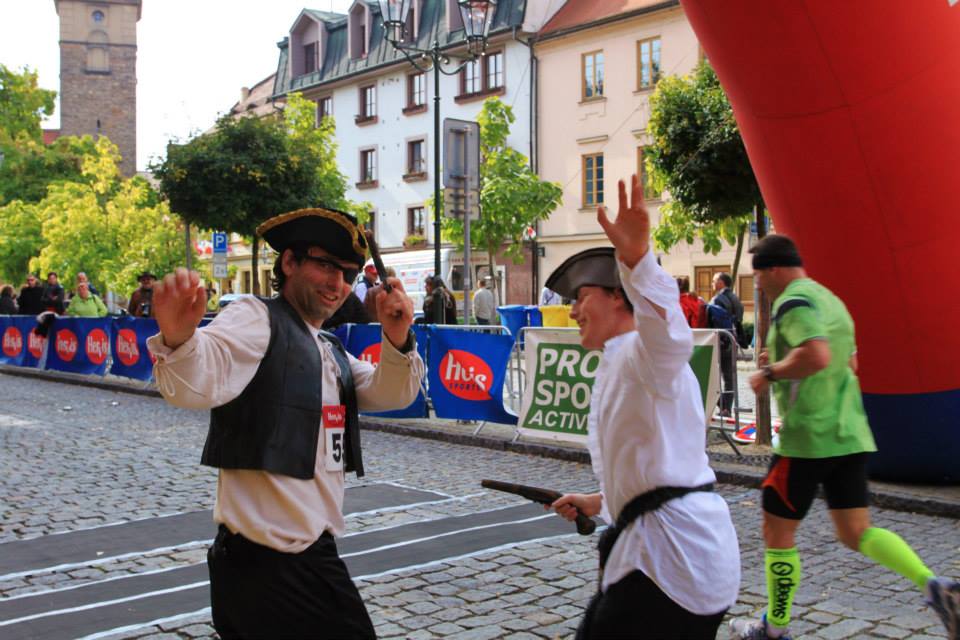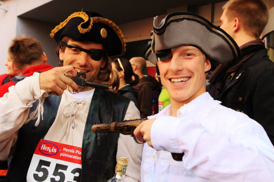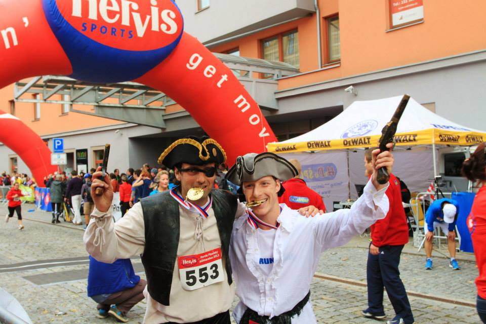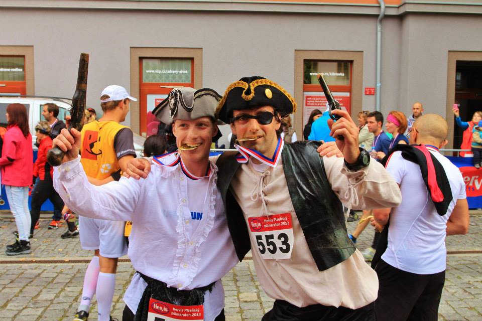 V sobotu 5. října hodinu po poledni vyrazilo více než šest set závodníků na trať Hervis Plzeňského půlmaratonu. Mezi nimi byli také Přemek a Jirka, kteří se rozhodli pro zpestření startovního pole tím, že na trať závodu vyběhli jako jediní běžci v maskách, konkrétně v kostýmech pirátů. Výsledný čas, který se pohyboval pár vteřin přes jednu hodinu a šestapadesát minut, nebyl podstatný.